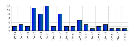 Haderslev og omegn, der er 462 villaer til salg. Villaernes størelse fordeler sig som vist på grafiken. Se alle villaerne her.